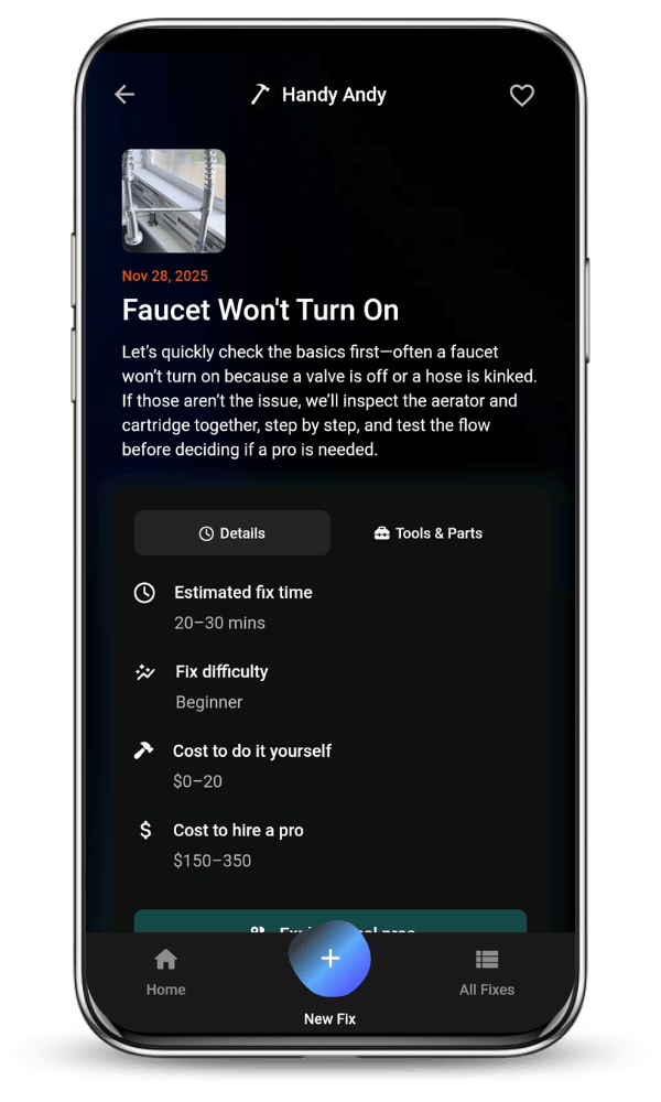 Snap a video and get instant fix steps, tools, parts, and guides — with the option to call a pro anytime.